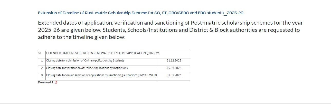 POST MATRIC SCHOLARSHIP (11/12/2025) +3 results declared (22/12/2024)